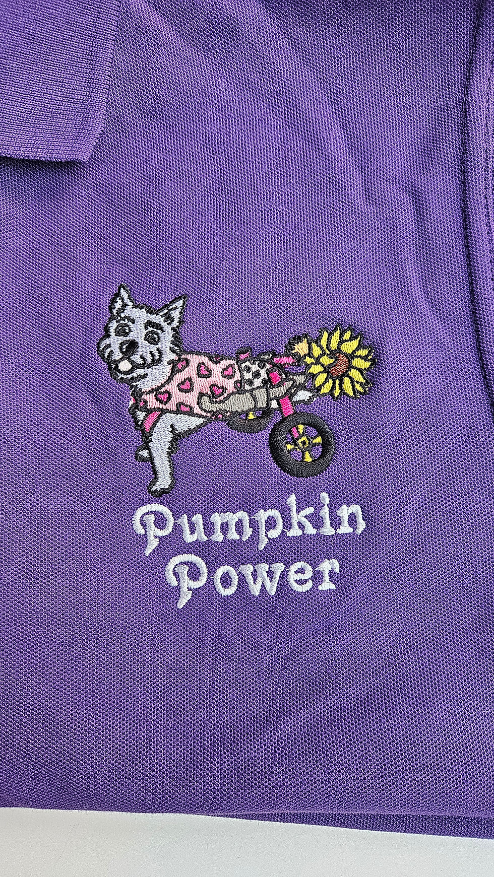 Purple embroidered Pumpkin Power polo shirt size S
